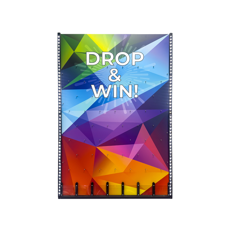 Bring high-energy fun to your trade show booth, corporate event, fundraiser, or activation with our oversized 4’ x 6’ Plinko Game. Precision-machined steel pins create the classic clink sound that draws in crowds, while optional red, blue and white LED lighting takes the excitement to the next level.