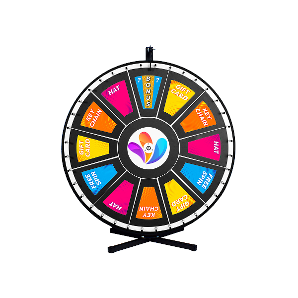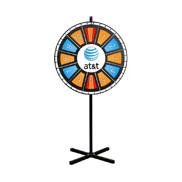 Our prize wheels can be customized with your logo in the center. You can write in or print your own prize to customize prizes as well.